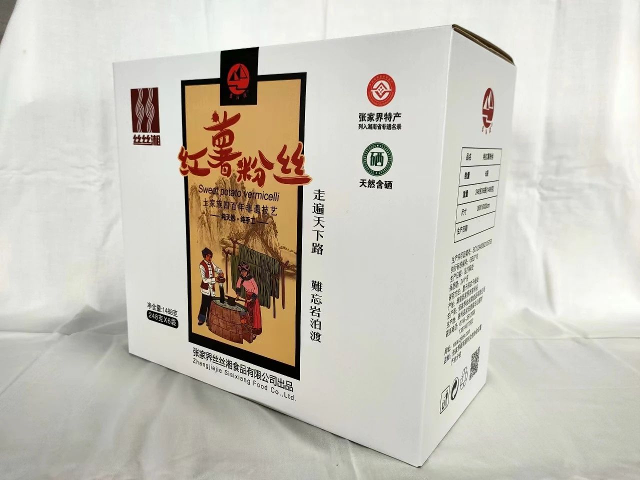 张家界丝丝湘食品有限公司2023年被评为品牌强国食品行业典范企业,丝丝湘主打产品是手工制作红薯粉丝,这个传统技艺通过家族传承100多年。到董事长向延勋这一代是第五代。是张家界申报较早的省级非遗项目。曾获得亚洲供港优 质食材贡献奖,受到**外食品市场的高度评价。